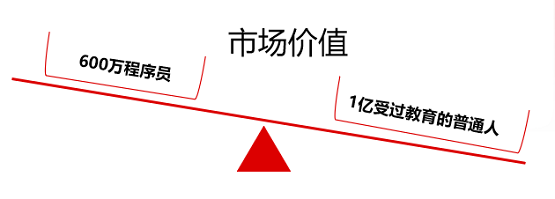 会上,邵苏毅给出了这样的数据:“据专业媒体的统计,全国目前程序员的就业人数大概为600万人。而据Gartner的分析,未来五年,IT定制开发需求和供应比为5:1,也就是说供不应求是常态,而且大量需求由于聘请程序员价格昂贵被压抑了。”在这样一个程序员严重短缺、数字化转型需求被大量压抑的现状下,软件开发工作如果变成受过高等教育甚至高中教育的人就能胜任的工作,这样将极大的降低软件开发成本,其市场价值和意义将非同凡响。