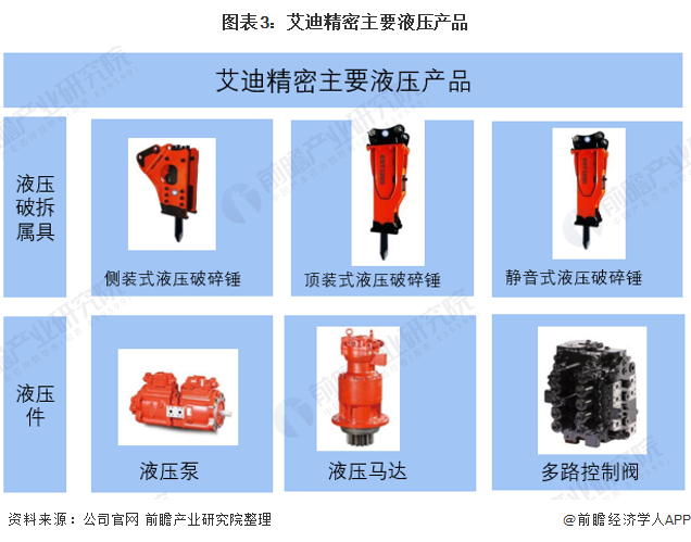 从产品线的品类来看,艾迪精密主营产品为液压破碎属具和液压件,包括液压泵、液压马达和多路控制阀;恒立液压的产品线则更为全面,包括液压油缸、液压油泵、行走液压阀、液压马达、工业液压阀和液压系统等液压行业全品类产品。