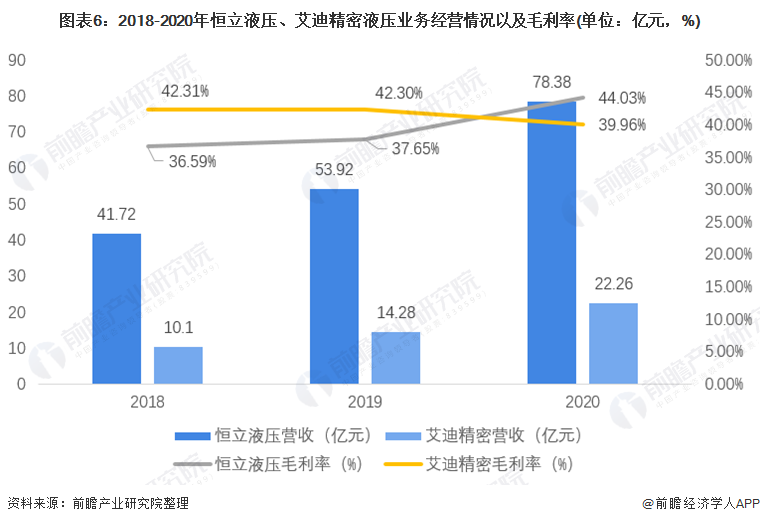 从销量来看,2018-2020年,恒立液压和艾迪精密液压元件销量保持上升趋势,2020年恒立液压液压元件销量为112.30万台,产品销售能力高于艾迪精密。